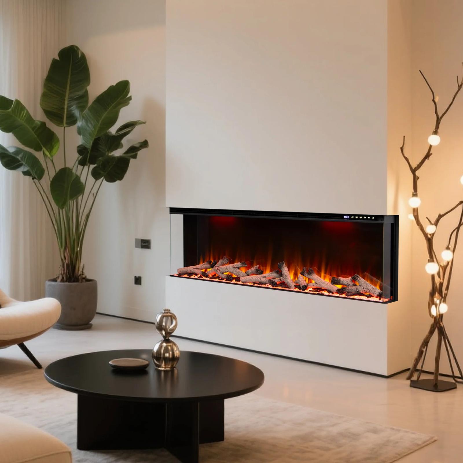 Elevate your home ambiance with the Maison 3-Sided LED Electric Media Wall Fireplace. Offering Wi-Fi Smart App control, versatile installation choices, and captivating LED flames, this fireplace perfectly blends sleek design with advanced technology, making it an essential statement piece for any contemporary living area.