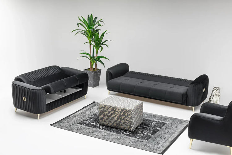 The Malta Luxury Premium 3+2 Black Gold Velvet Sofa Bed Set