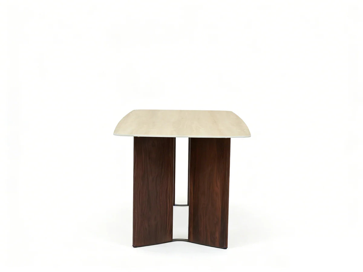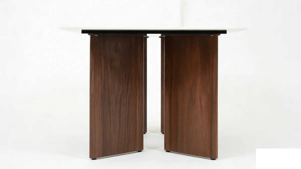 Wear and scratch resistant, stain-proof and easy to clean. The table top edges are rounded, preventing bumps and offering greater safety for family members, especially households with children. It has a Matt top to ensure maximum safety and long lasting. - Base is Brown MDF wood.