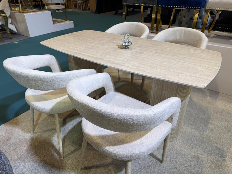 Olympia 160cm Beige Ceramic Marble Dining Table