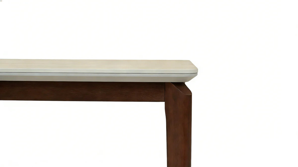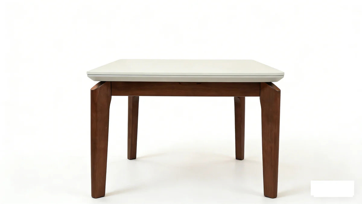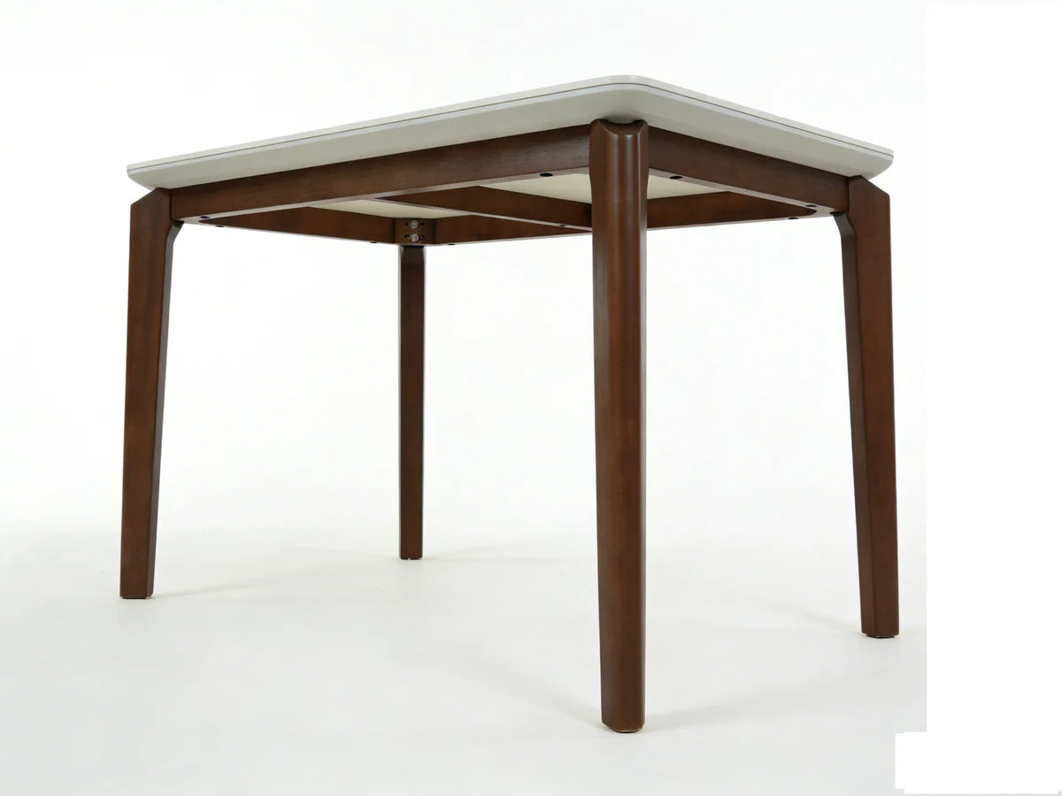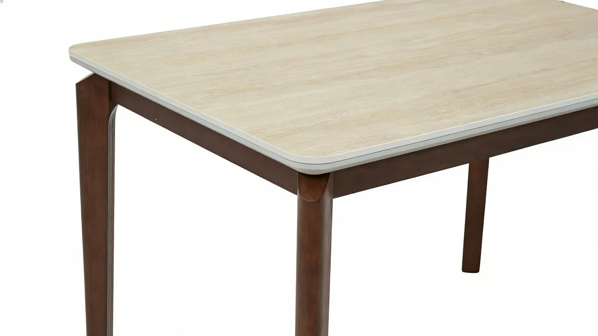 Wear and scratch resistant, stain-proof and easy to clean. The table top edges are rounded, preventing bumps and offering greater safety for family members, especially households with children. It has a matt top to ensure maximum safety and long lasting. - Base is Rubber Wood.