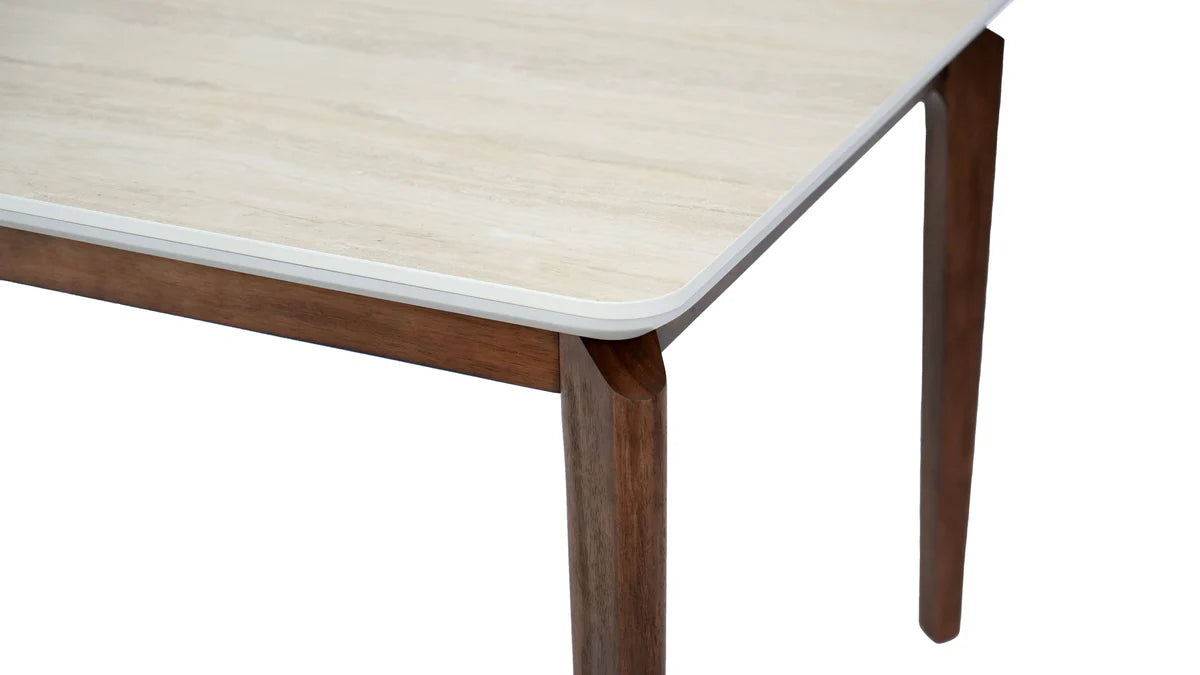Wear and scratch resistant, stain-proof and easy to clean. The table top edges are rounded, preventing bumps and offering greater safety for family members, especially households with children. It has a matt top to ensure maximum safety and long lasting. - Base is Rubber Wood.
